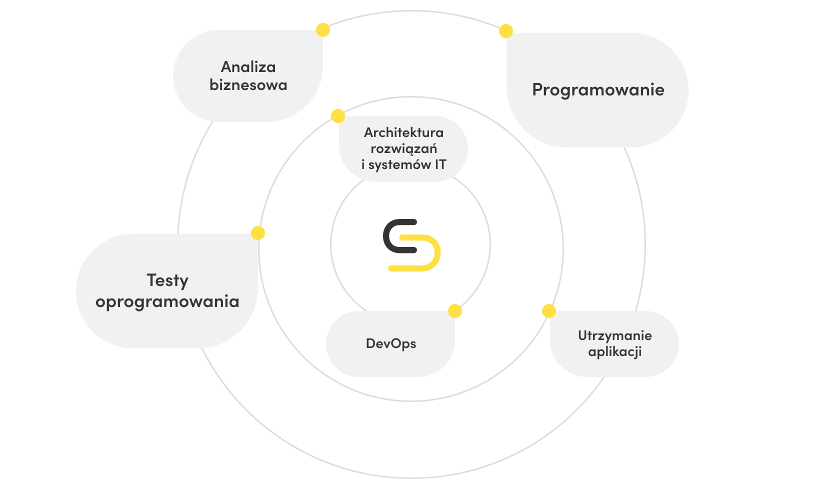 z obszarów aplikacji webowych, desktop oraz mobile. Realizacja projektów obejmuje wiodące technologie służące do wytwarzania oprogramowania w obszarze back-end (JAVA, C#, Python, C++, Node.js, Scala, PHP,) oraz front-end (Angular, React, Vue). Oprócz technologii wiodących posiadamy doświadczenie w budowaniu zespołów z niszowymi kompetencjami np. Golang. Dodatkowo oferujemy szerokie doświadczenie sektorowe, co pozwala nam